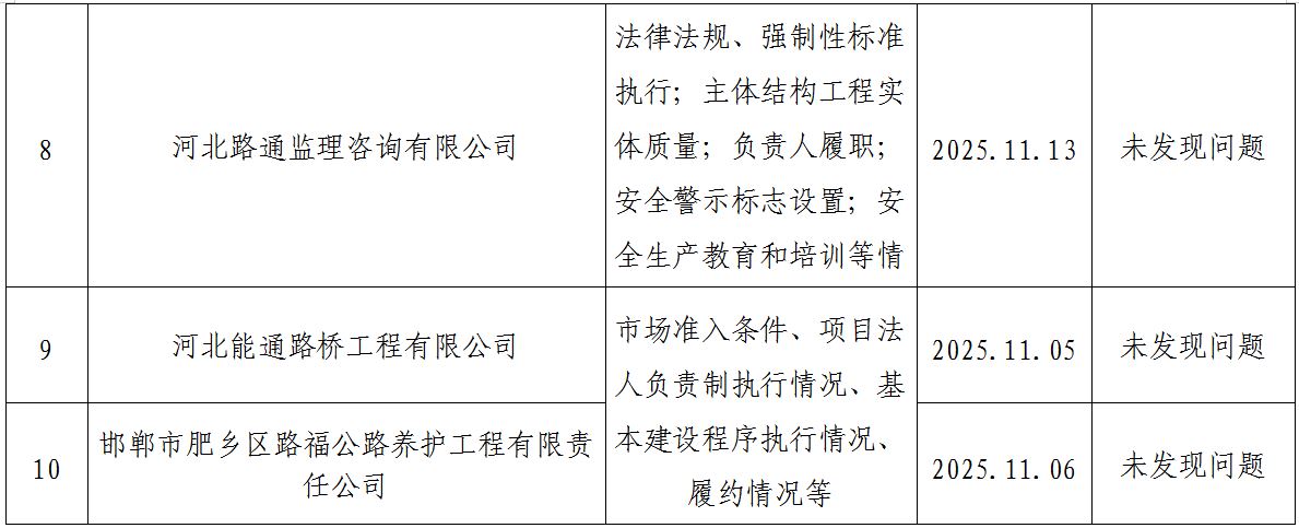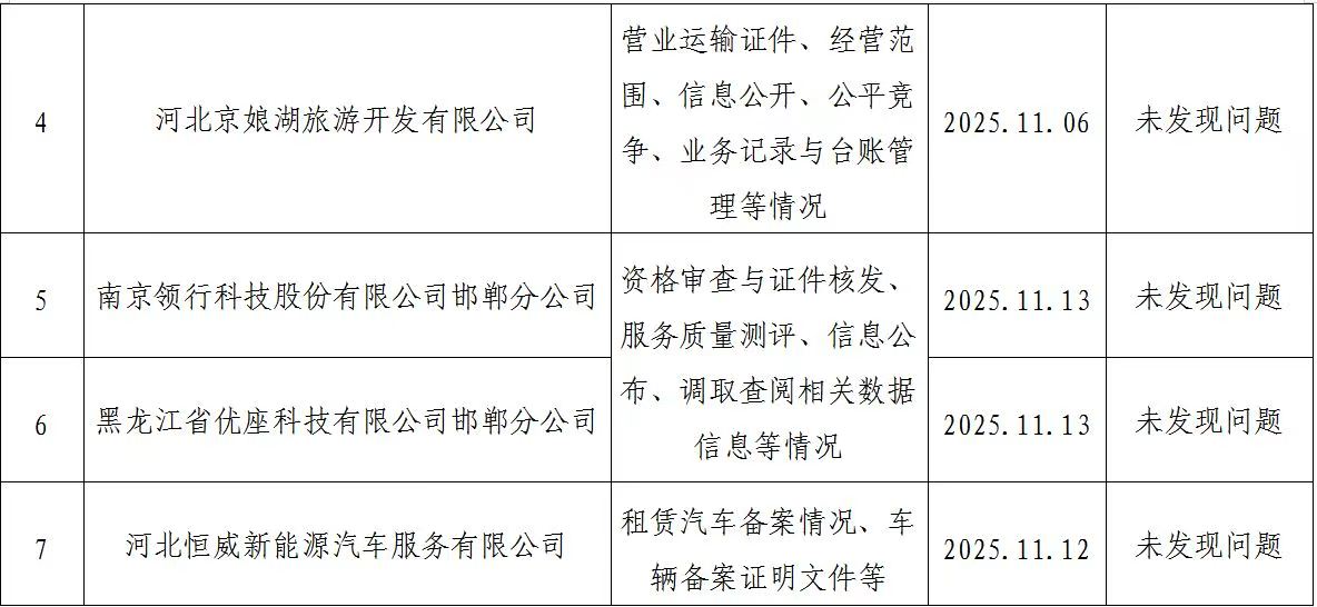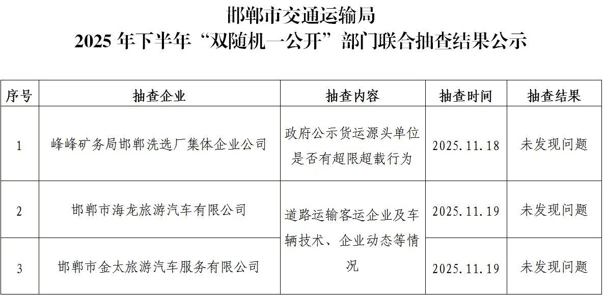 邯郸市交通运输局 2025年下半年“双随机、一公开”部门联合抽查结果公示